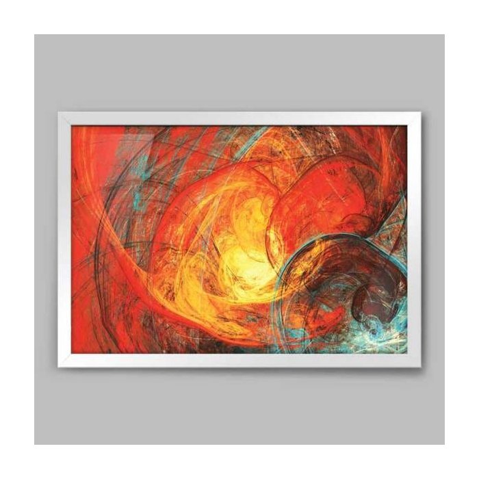 Quadro Abstrato Textura Abstrata Vermelho Amarelo - 45x30cm - Moldura Caixa Branco