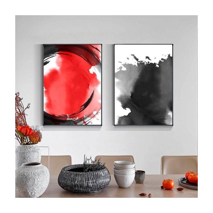 Quadro Abstrato Vermelho Tinta Preto - Kit 2 telas - 150 x 100 cm - Preta
