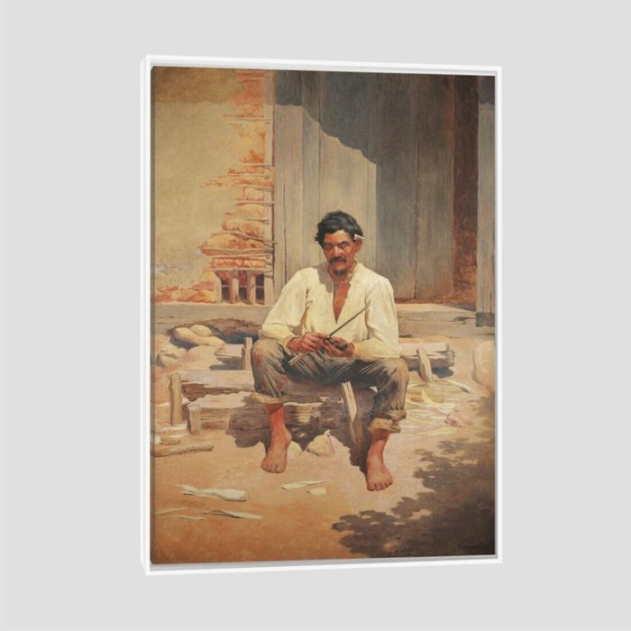 Quadro Reprodução Pintores Almeida Junior Caipira Picando Fumo Tela Canvas Moldura Branca 63x42cm. Reprodução de pintura famosa do artista Almeida Junior . Acabamento Moldura Branca. Tamanho: 63x42cm. Material: Tela Canvas. Referência: QUAREAJ10X36T0X13M1X535. Dispensa vidro. . Quadro com imagem impressa em tecido canvas (o mesmo usado em tela de pintura) esticado em chassi de madeira tratada com 3 cm espessura. As laterais do quadro são cobertas com a extensão da imagem frontal (sem alterar a imagem original da frente do quadro) O quadro tela canvas vai pronto pra colocar na parede e dispensa uso de vidro. A moldura modelo infinita compõe a tela canvas proporcionando mais beleza e sofisticação ao quadro. Tem estilo moderno e detalhe de espaçamento entre a tela e a moldura que dá um toque todo especial ao quadro. As laterais da moldura tem altura de 4 cm.