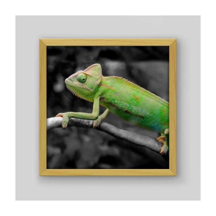 Quadro Animal Camaleão Verde - 40x40cm - Moldura Padrão Madeira