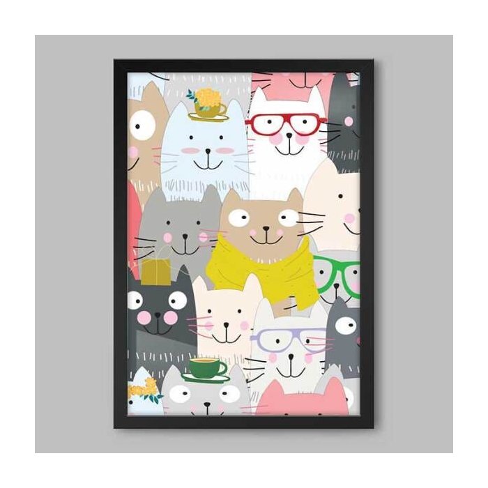 Quadro Animal Funny Cat - 60x40cm - Moldura Padrão Preto
