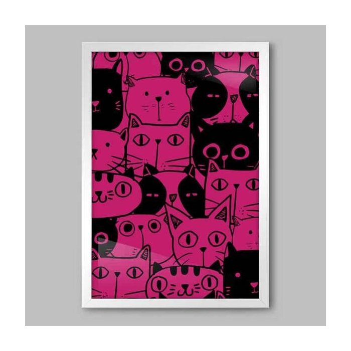 Quadro Animal Funny Cat Pink - 60x40cm - Moldura Padrão Branco