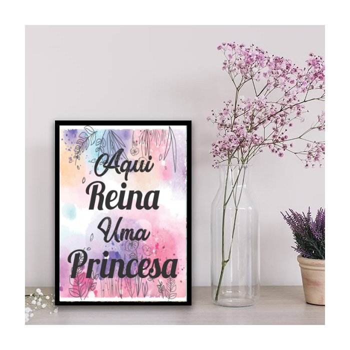 Quadro Aqui Reina Uma Princesa 33x24cm:Madeira preta