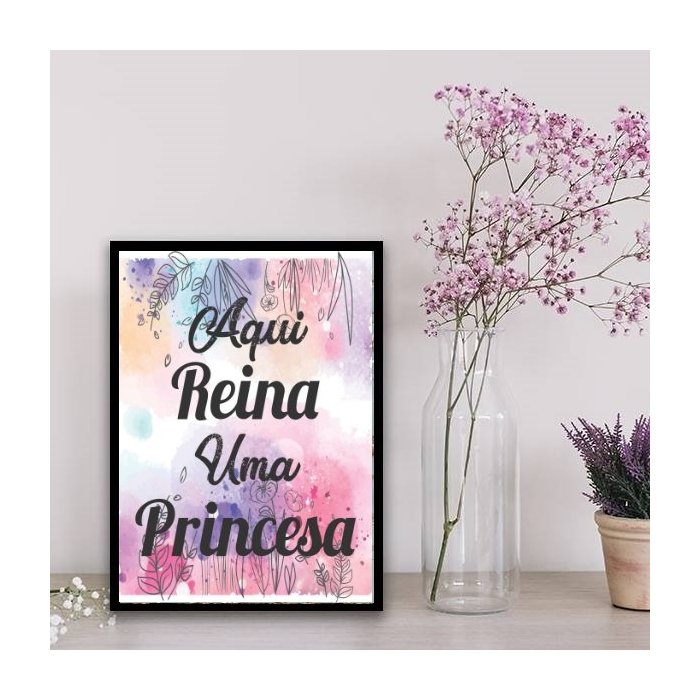 Quadro Aqui Reina Uma Princesa 45x34cm - com vidro:Madeira branca