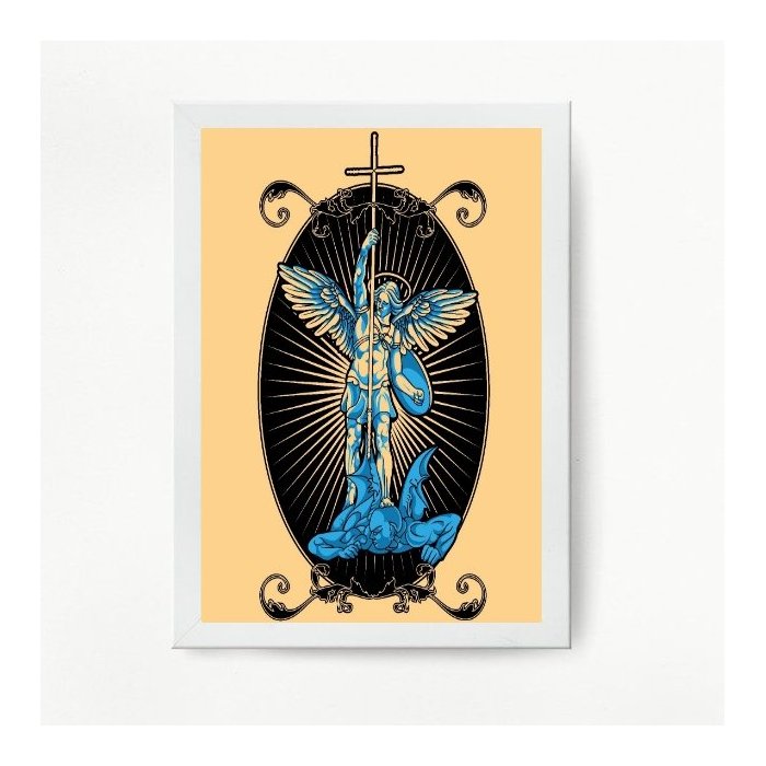 Quadro Arcanjo Miguel Arte Digital 24x18cm:Madeira branca