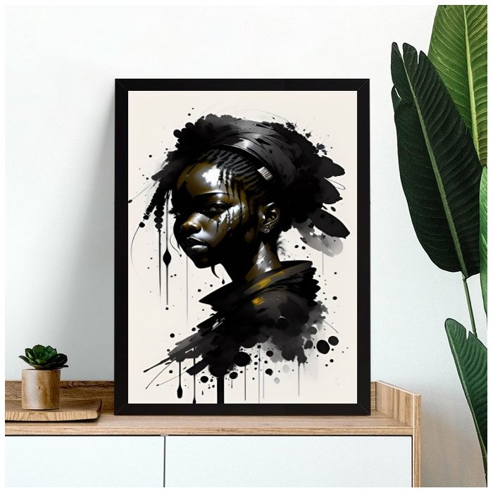 Quadro Arte Aquarela Mulher Negra 45x34cm - com Vidro:moldura Preta