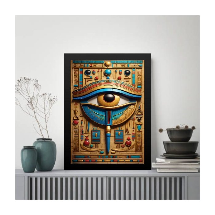 Quadro Arte Egípcia - Olho de Horus 33x24cm:moldura Preta