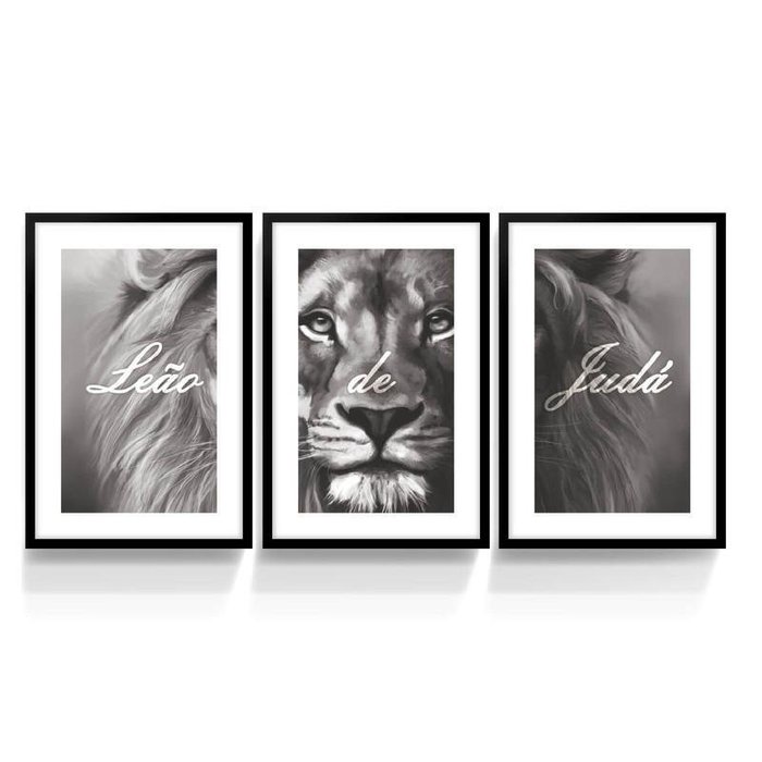 Quadro Arte Leão de Judá Para Sala em Preto e Branco