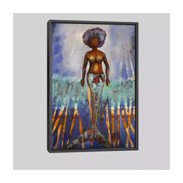 Quadro Artista Olokum Grande Mãe 45x65 Moldura Preta Azul
