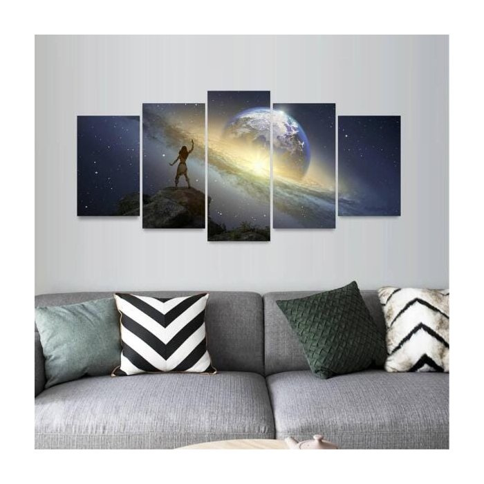 Quadro Artístico Fantasia Planeta Galáxia Mosaico 5 Peças