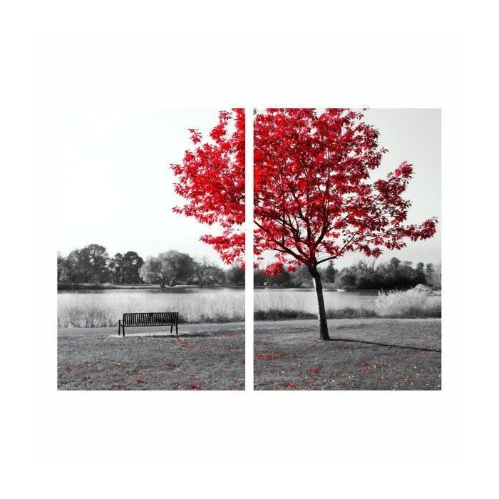 Quadro Árvore da Vida Vermelha Banco da Praça em Tecido