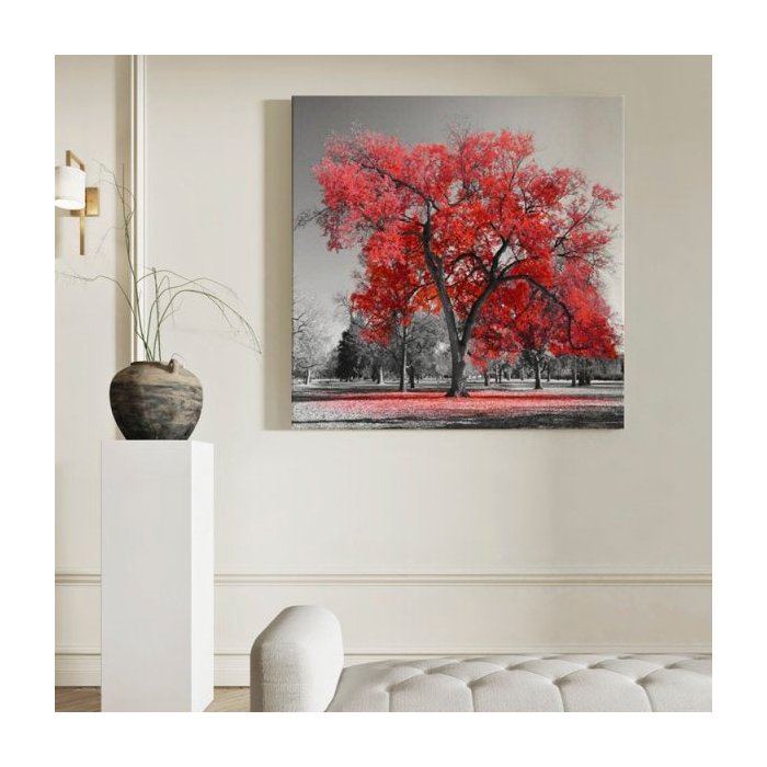 Quadro Árvore da Vida Ype Vermelho - Tela Única - 60 x 60 cm - Preta