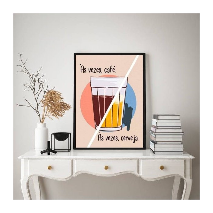 Quadro As Vezes Café , As Vezes Cerveja 24x18cm:moldura Preta