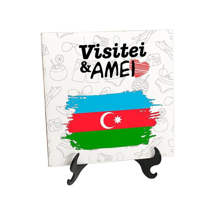 1x Quadro Azulejo Bandeira Azerbaijão Visitei E Amei Viagem1x Suporte de mesa para azulejo decorativo