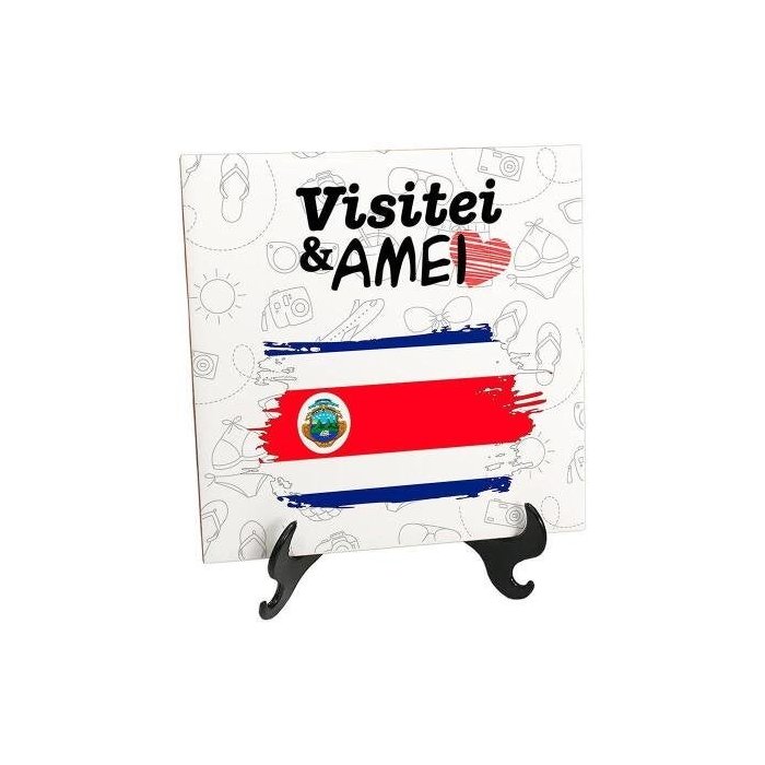 1x Quadro Azulejo Bandeira Costa Rica Visitei E Amei Viagem1x Suporte de mesa para azulejo decorativo