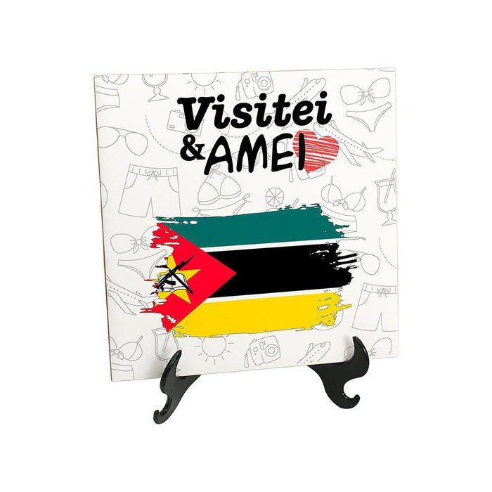 1x Quadro Azulejo Bandeira Moçambique Visitei E Amei Viagem1x Suporte de mesa para azulejo decorativo