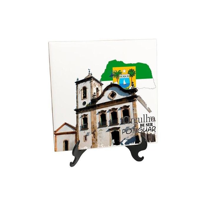 1x Quadro Azulejo Bandeira Orgulho Potiguar1x Suporte de mesa para azulejo decorativo