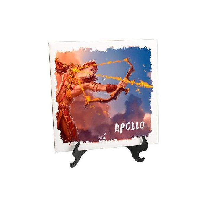 1x Quadro Azulejo Coleção Deus Grego Sol Apolo Arqueiro Justiça1x Suporte de mesa para azulejo decorativo
