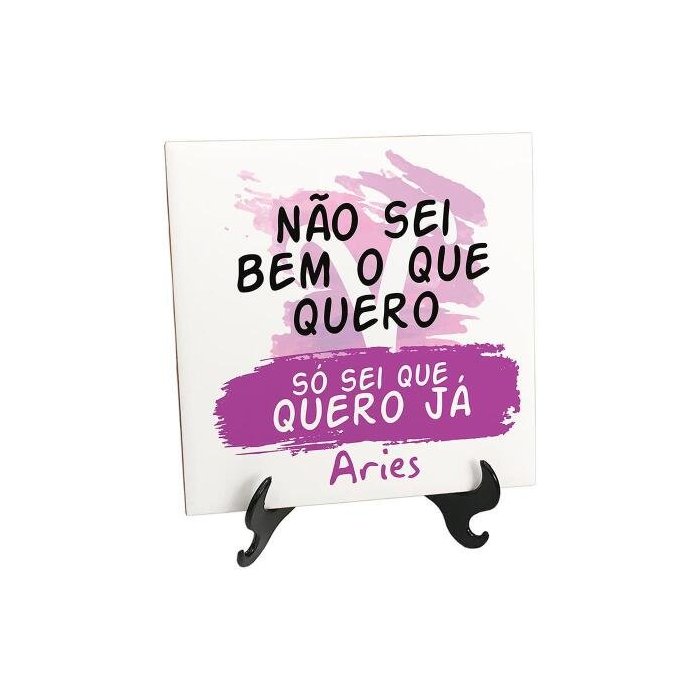 1x Quadro Azulejo Engraçado Símbolo Áries Quero Já1x Suporte de mesa para azulejo decorativo