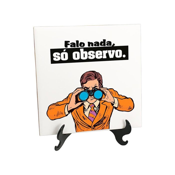 1x Quadro Azulejo Falo Nada Só Observo Meme Engraçado1x Suporte de mesa para azulejo decorativo