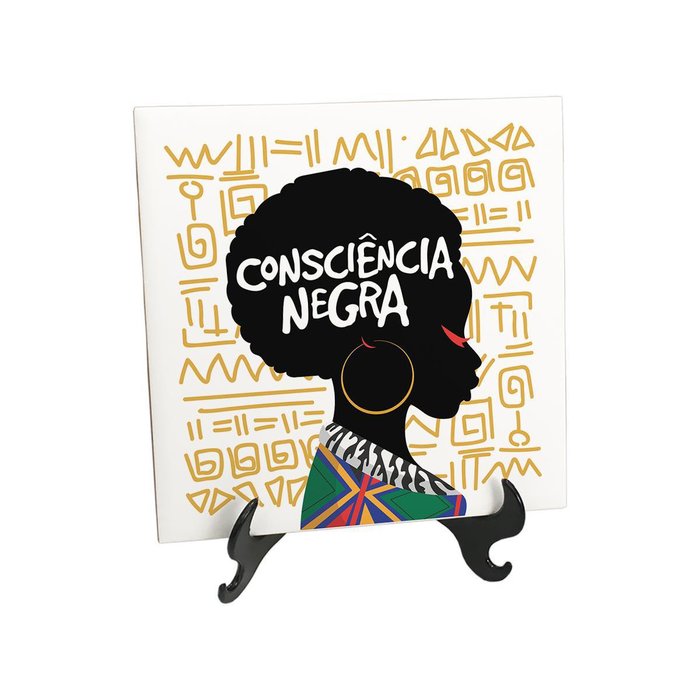 Quadro Azulejo Frase Consciência Negra Arte Afrodecêndencia