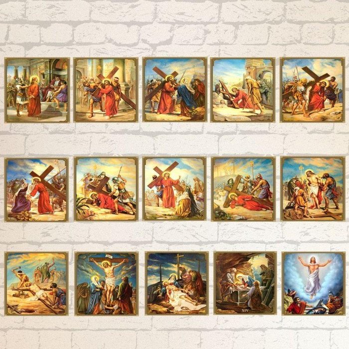 Quadro Azulejo Via Sacra 15 Unidades Tamanho 10x10 Cm