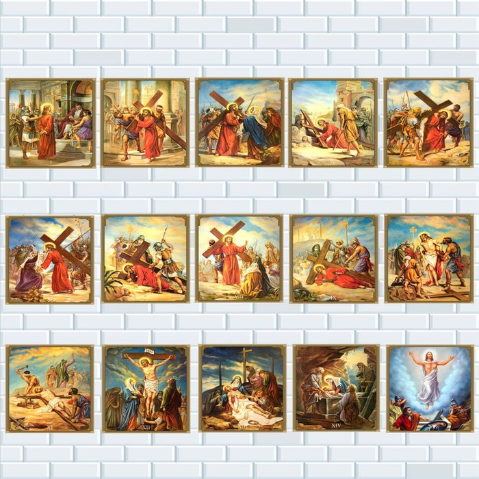 Quadro Azulejo Via Sacra 15 unidades tamanho 15x15 cm