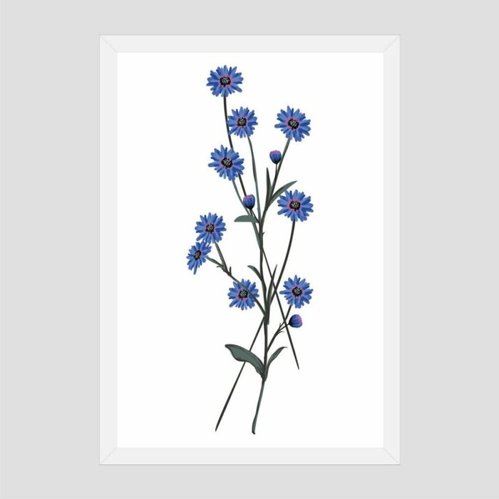 Quadro Azulinha Vinil Moldura Branca 45X30Cm