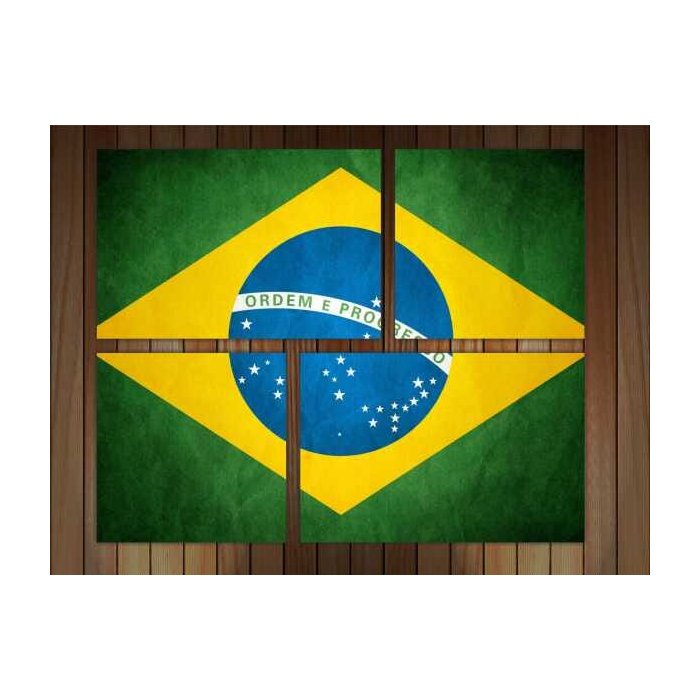 Quadro Bandeira Do Brasil Mosaico 4 Peças Com Moldura