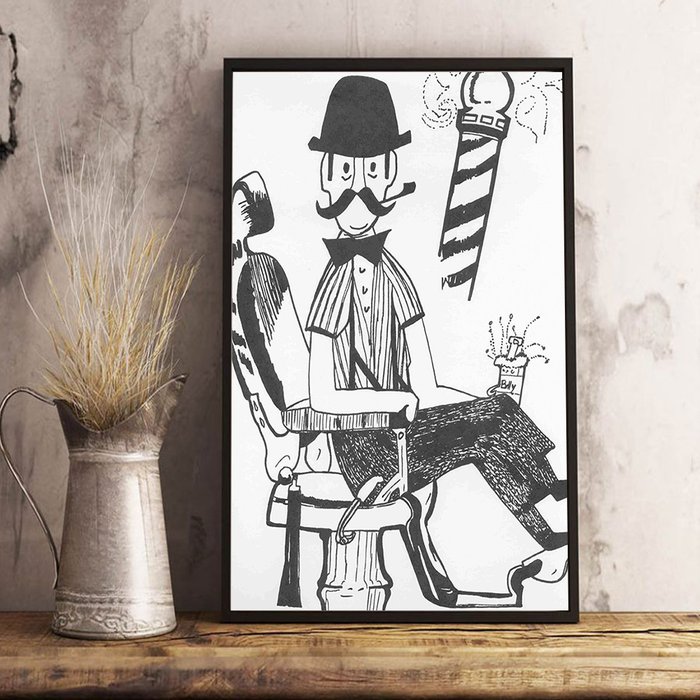 Quadro Barbeiro Barbearia Chaplin Bigode Tamanho A4 Poster