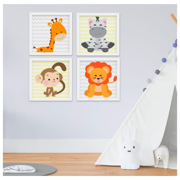 Quadro Bebê Infantil Menino Menina Safari Kit 4 Peças