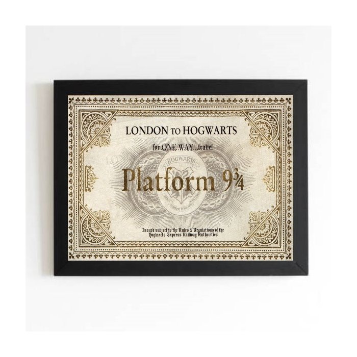 Quadro Bilhete Trem Hogwarts - Plataforma 33x24cm:moldura Branca Moldura branca