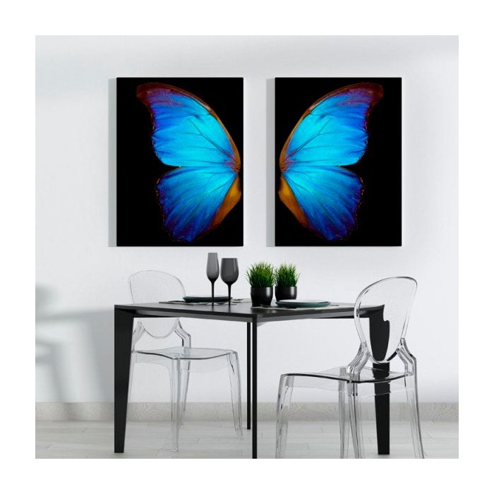 Quadro Borboleta Azul e Preto Delicado 1 - Kit 2 telas - 60 x 40 cm - Chassi