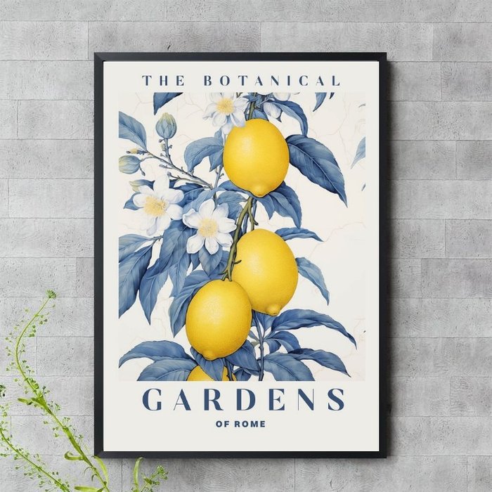 Quadro Botanical Gardens - Azul e Amarelo 33x24cm - com Vidro:moldura Preta Moldura preta