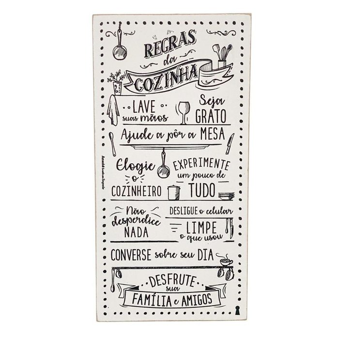 Quadro Box Regras da Cozinha em Mdf 15x30
