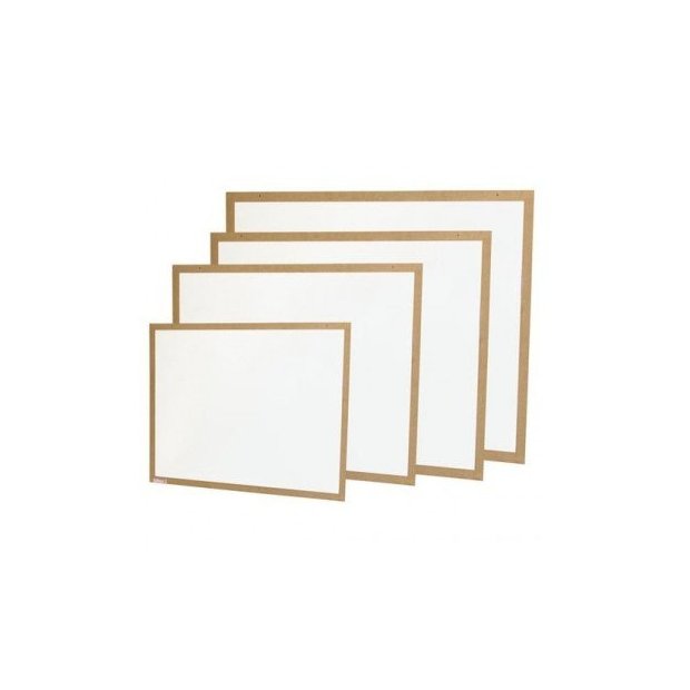 Quadro Branco, para escrita com marcador especial para quadro branco. Apagável a seco com flanela macia ou apagador com base em feltro. fabricado com matéria prima adequada a proporcionar um quadro econômico. Composição – Quadro branco com moldura de madeira – SupertelaChapa de fibra de madeira 3mm, revestida com pintura na cor branca vitrificada brilhante.Moldura madeira pinus reflorestada na cor naturalOrifícios na moldura para fixação de parafuso na parede.