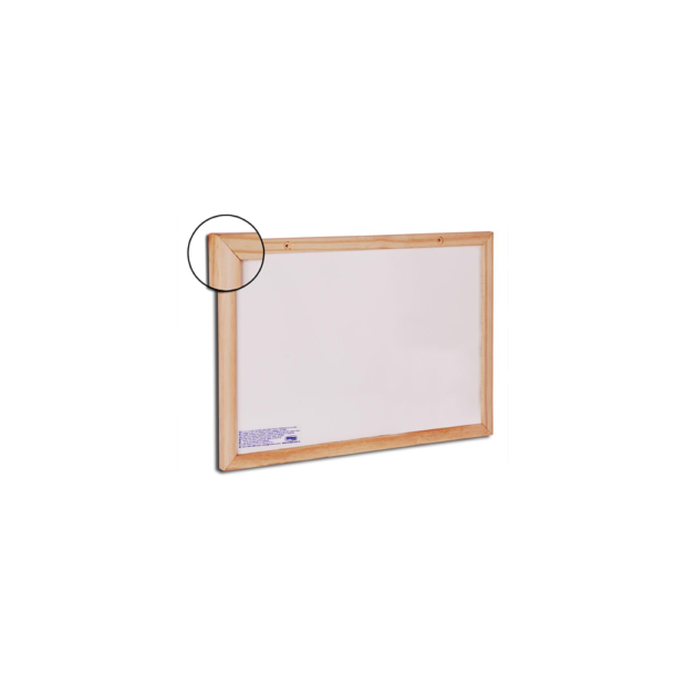 Quadro Branco, para escrita com marcador especial para quadro branco. Apagável a seco com flanela macia ou apagador com base em feltro. fabricado com matéria prima adequada a proporcionar um quadro econômico. Composição – Quadro branco com moldura de madeira – SupertelaChapa de fibra de madeira 3mm, revestida com pintura na cor branca vitrificada brilhante.Moldura madeira pinus reflorestada na cor naturalOrifícios na moldura para fixação de parafuso na parede.