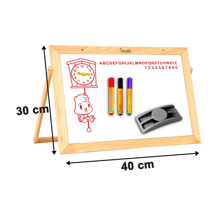 Quadro Branco Lousa Infantil 40X30 cm Relógio e Alfabeto 7015 SOUZA + 3 Marcadores Coloridos + 1 Apa