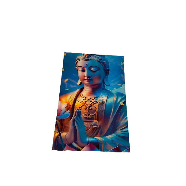 Esta em especial, retrata Buda Sidarta em meditação com tonalidade azul predominante. Transmitindo paz, leveza, calma e sabedoria.