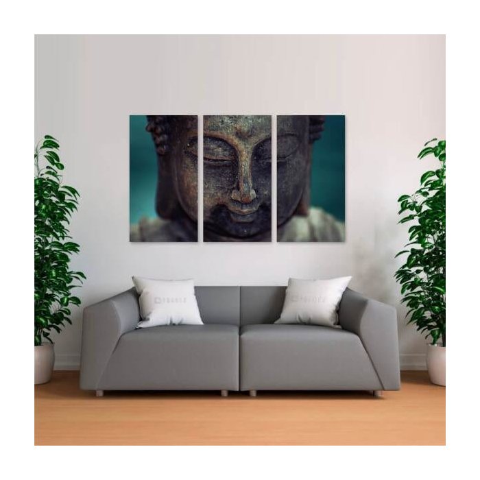 Quadro Buda Religião Estátua Para Sala Hall Mosaico 3 Peças
