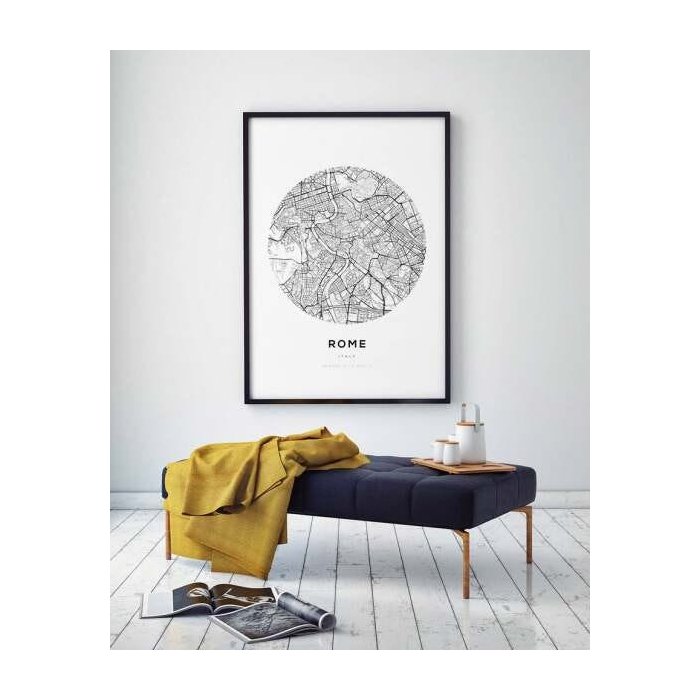 Quadro C/Moldura Mapa Roma Itália Cidades Sala Escritório 43x63