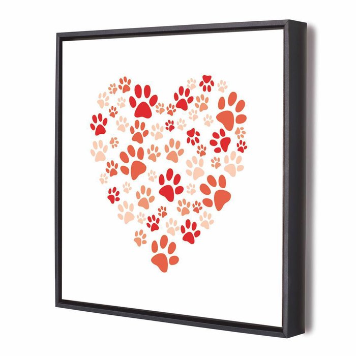 Quadro Cachorro Patas Em Coração 60X60Cm Slim Preta B092