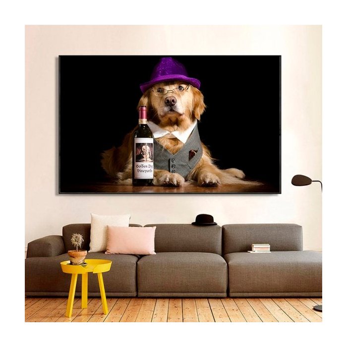 Quadro Cachorro Vinho Wine - Tela Única - 90 x 60 cm - Chassi