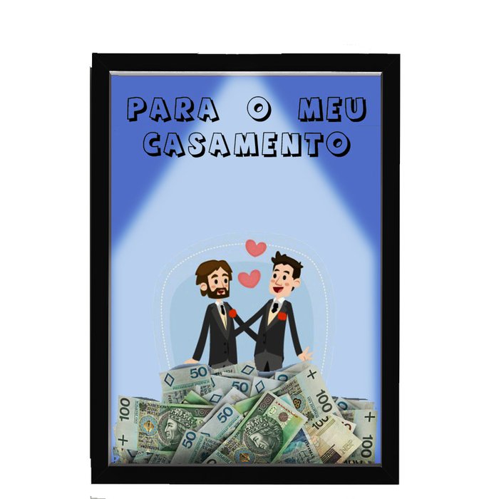 Deixe sua casa mais alegre, com melhor energia e estilo, design exclusivo NERDERIA E LOJARIA PRESENTES.Quadro caixa cofre, guarde o dinheiro para o seu casamento com imuminação LED.Mantenha quadro exposto em seu casamento para arrecadar um dinheirinho extra para lua de mel.Quadro caixa porta dinheiro com vidro frontal e furo superior.Quadro ficou cheio? Basta abrir o fundo removível e retirar as tampas. Quadro novo para ser utilizado novamente.Medida externa: 33x43cm.Impressão de alta qualidade, imagem no fundo do quadro e acabamento lateral interno em foam board branco (não é pintado).Conjunto LED branco bivolt (110V e220V) com fonte inclusa.Moldura de madeira laqueada e pintada com acabamento faceado para garantir a qualidade e resistência do produto.Pode ser pendurado com fita dupla face conforme orientação do fabricante ( inserir 2 tiras nos estremos da traseira das molduras inferior e superior) , prego aço e ou parafuso.Consulte em nossa loja virtual os serviços de instalação, basta entrar em contato via whatapp e agendar o serviço.Atendimento restrito para a grande São Paulo e região.Podem ocorrer pequenas variações de cor, brilho e tamanho.