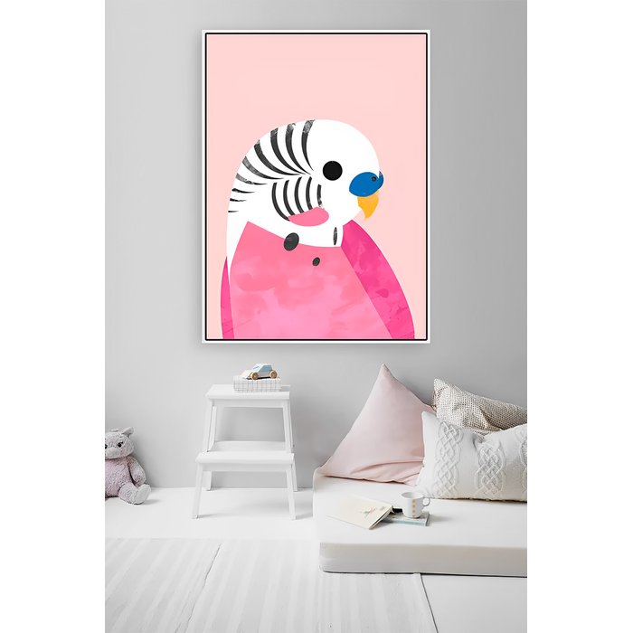 Quadro Calopsita Rosa - Animais - Moldura Caixa + Foam + Vidro em Vários Tamanhos - Artfine