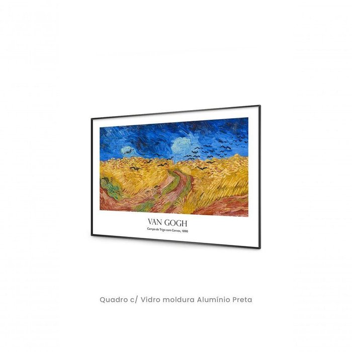 Quadro Decorativo Campo de Trigo com Corvos, 1890 de Van Gogh - Horizontal Quadro c/ Vidro moldura Alumínio Preta - 42x60cm - Quadro Decorativo Top Quadros