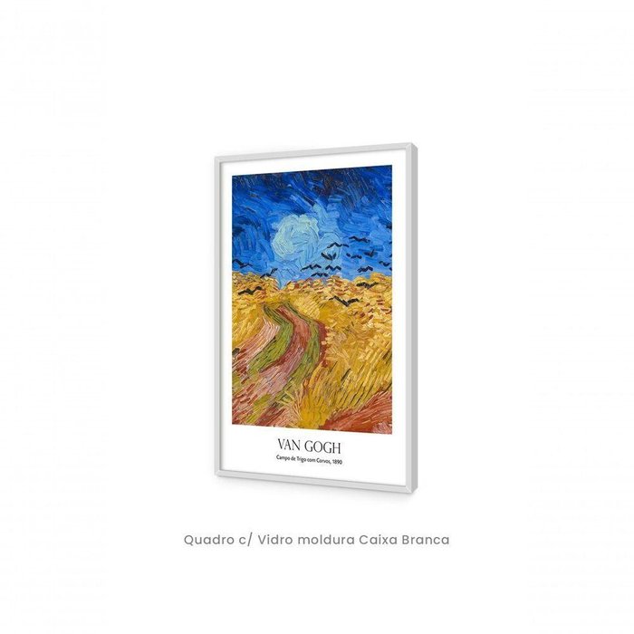 quadro Decorativo Campo de Trigo com Corvos, 1890 de Van Gogh - Vertical Quadro c/ Vidro moldura Caixa Branca - 84x119cm - Quadro Decorativo Top Quadros