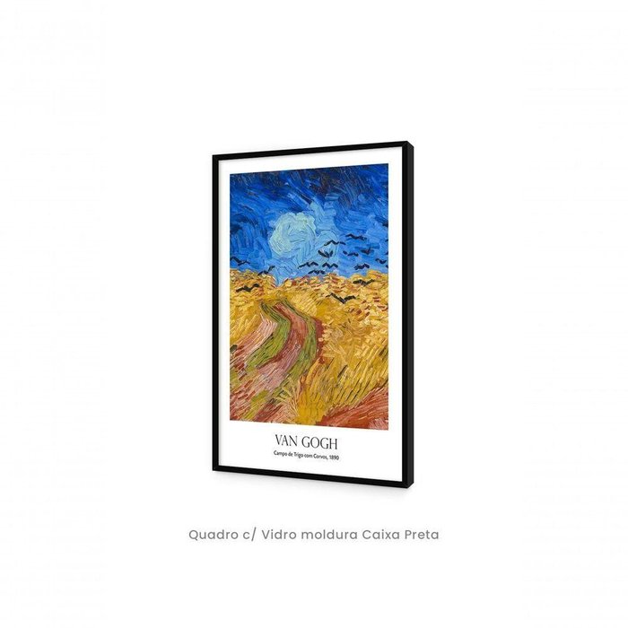 quadro Decorativo Campo de Trigo com Corvos, 1890 de Van Gogh - Vertical Quadro c/ Vidro moldura Caixa Preta - 60x84cm - Quadro Decorativo Top Quadros