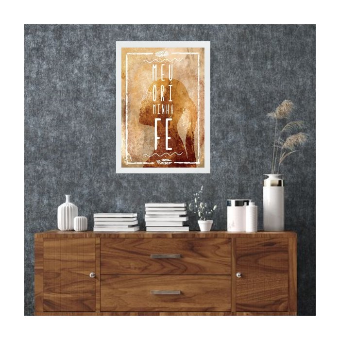 Quadro Candomblé Meu Orí Minha Fé 24x18cm:madeira Preta