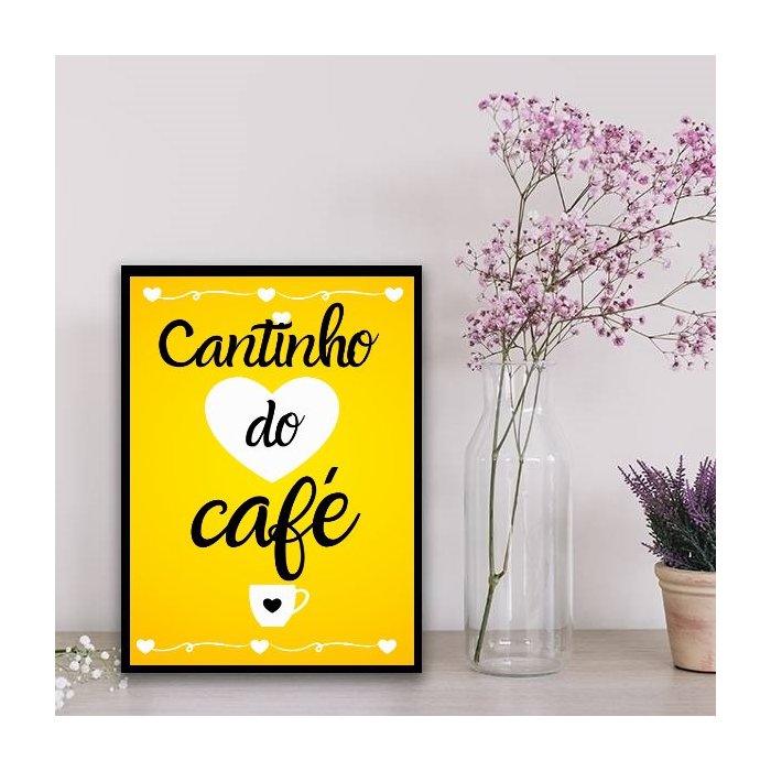 Quadro Cantinho Do Café Amarelo 33x24cm - com vidro:Madeira preta